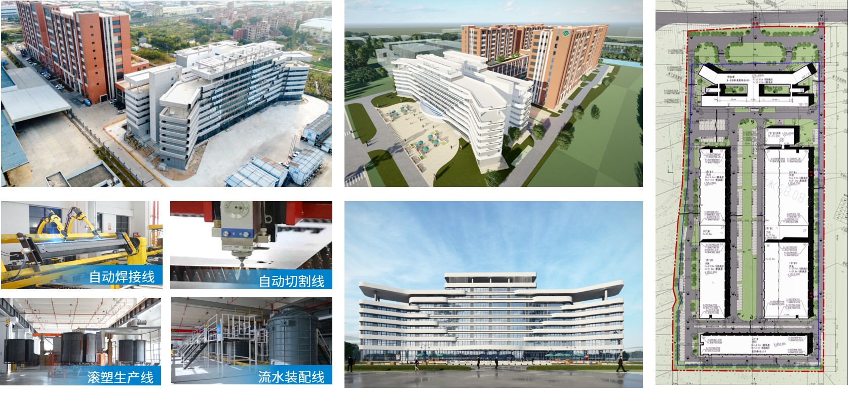 资源环保东莞智能装备研发生产基地,总建筑面积约 15 万平方米。该基地积极发挥产业集群效应,聚焦人才聚集培育、科技成果转化以及创新优质企业孵化,矢志打造成为粤港澳大湾区规模最大且极具现代化、科技化、智能化的水环境装备智造基地。